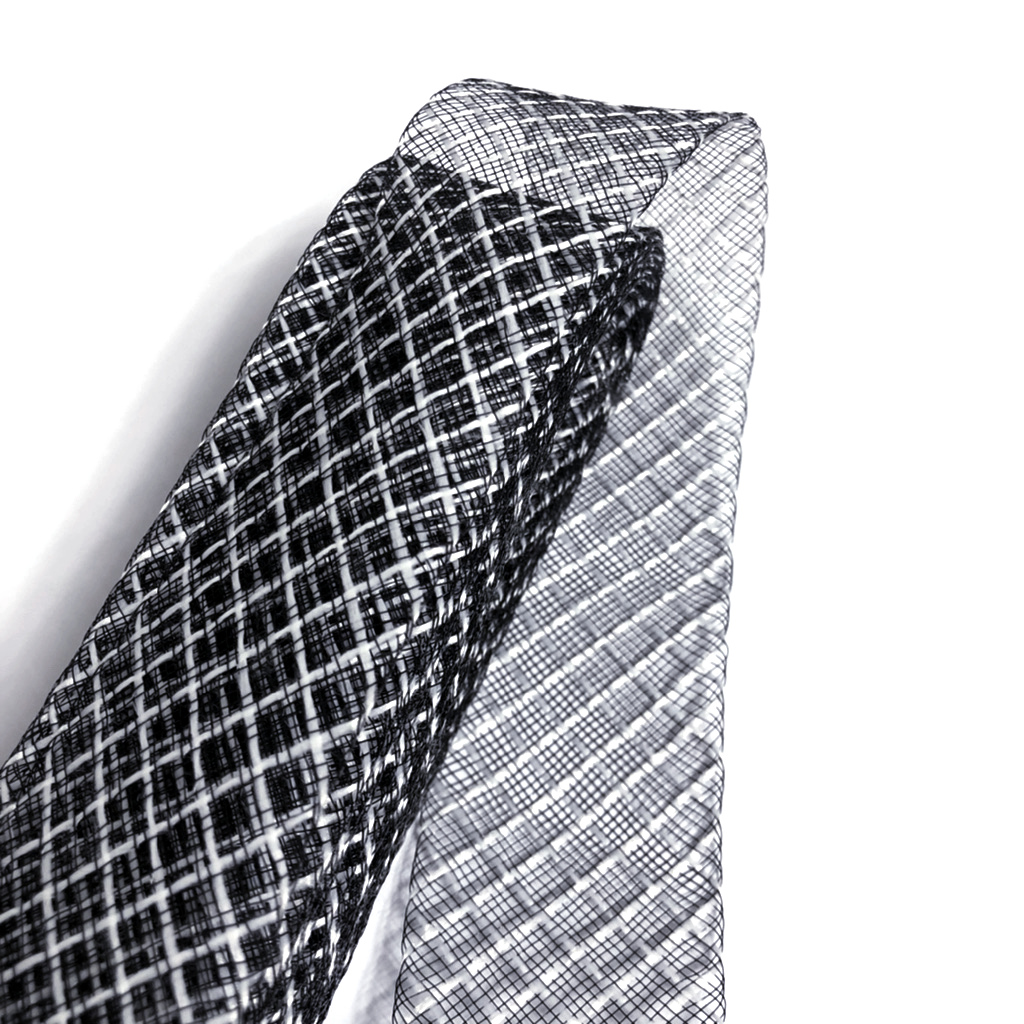 Elastic mesh net hard white chequered black nylon ribbon by roll – width 46 mm – length approximately 16 metres