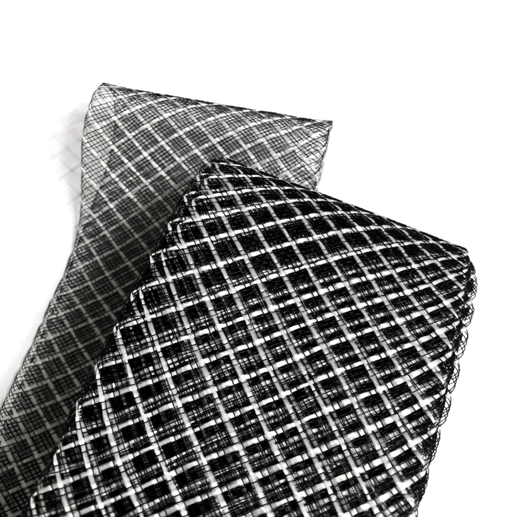 Elastic mesh net hard white chequered black nylon ribbon by roll – width 84 width – length approximately 15 metres