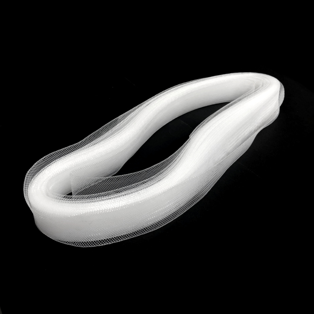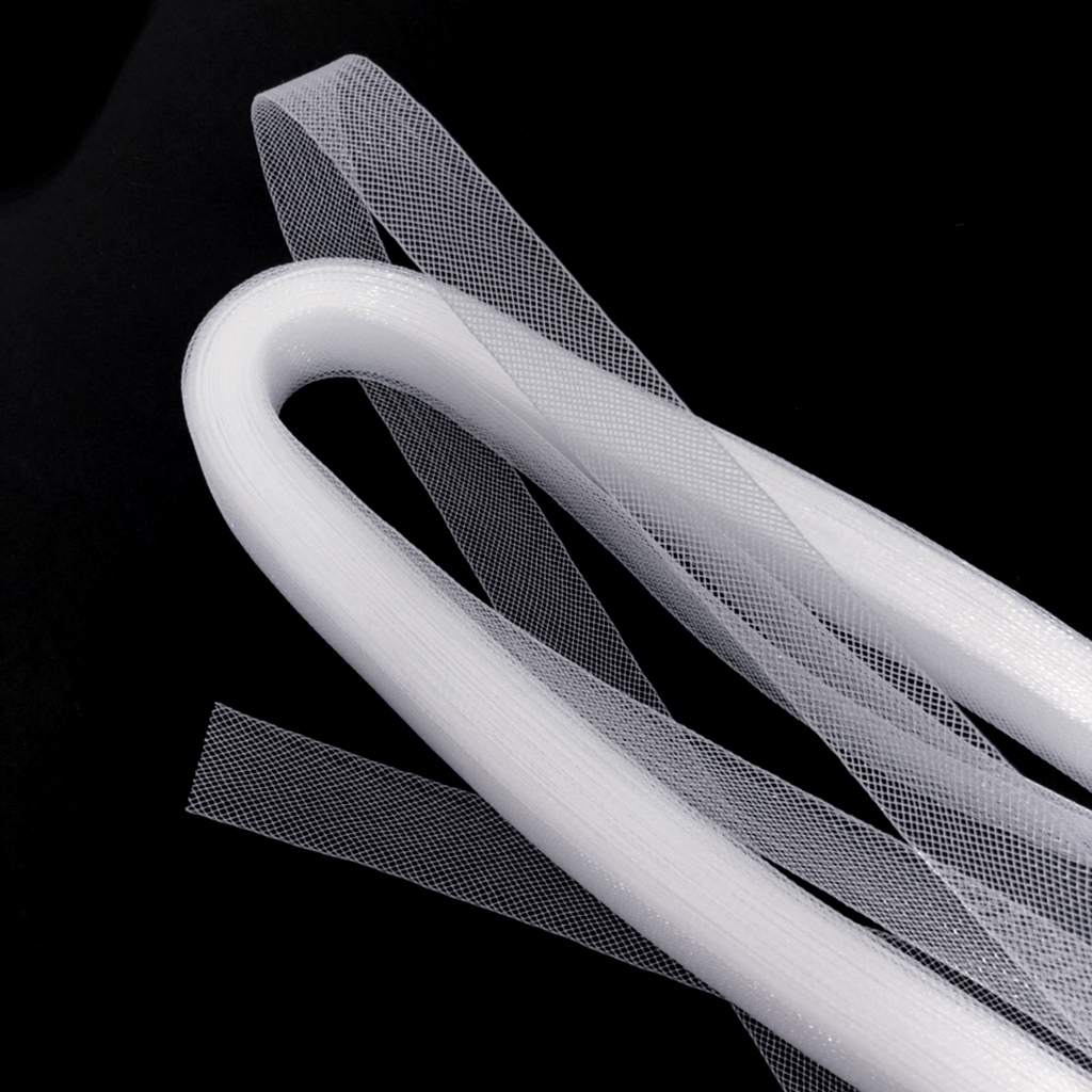Elastic mesh net hard white nylon ribbon by roll – width 15 mm – approximately 17 metres long