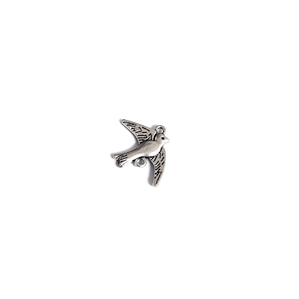 Silvery metal bird connector – size 17.5 x 21.5 mm