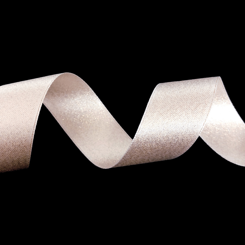 Cream polyester ribbon with golden glitter by metre – width 26 mm