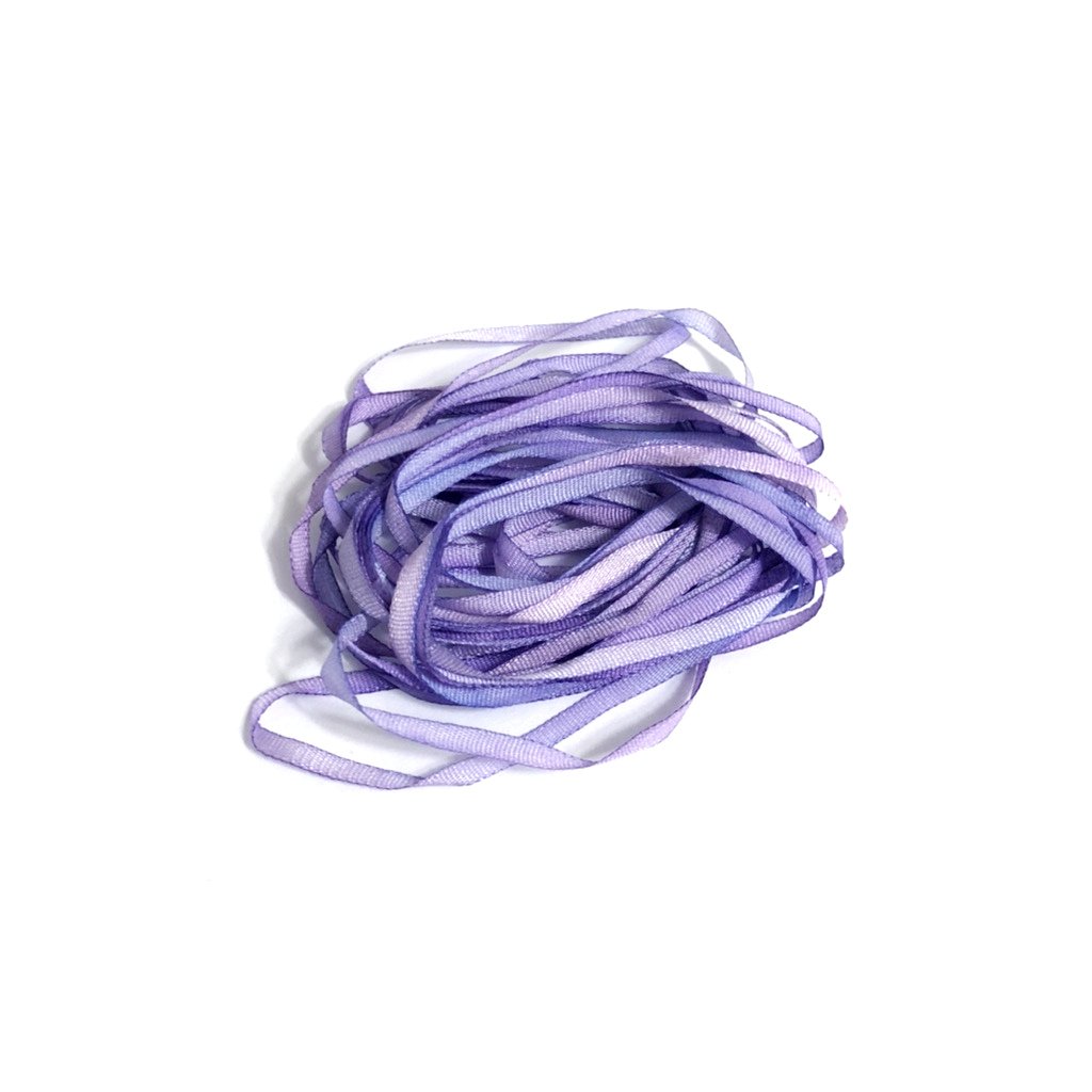 Hand-painted bluish light purple pure silk ribbon – width 3 mm – length 3 metres
