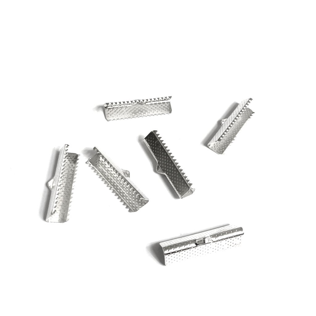 Silvery metal ribbon clamps – size 6 x 20 mm – 6 pieces