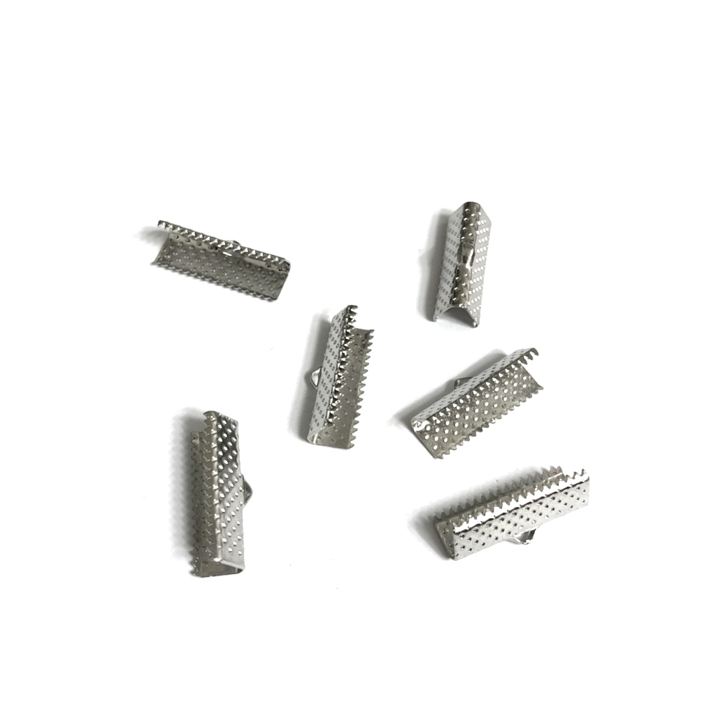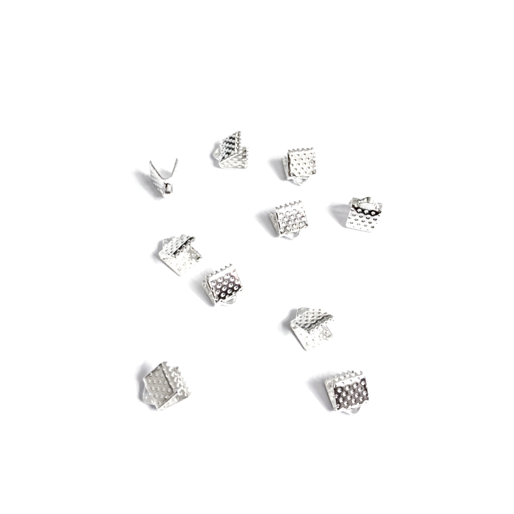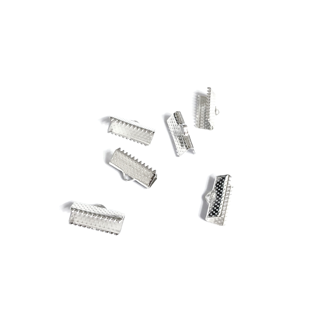 Silvery metal ribbon clamps – width 6 mm – 10 pieces