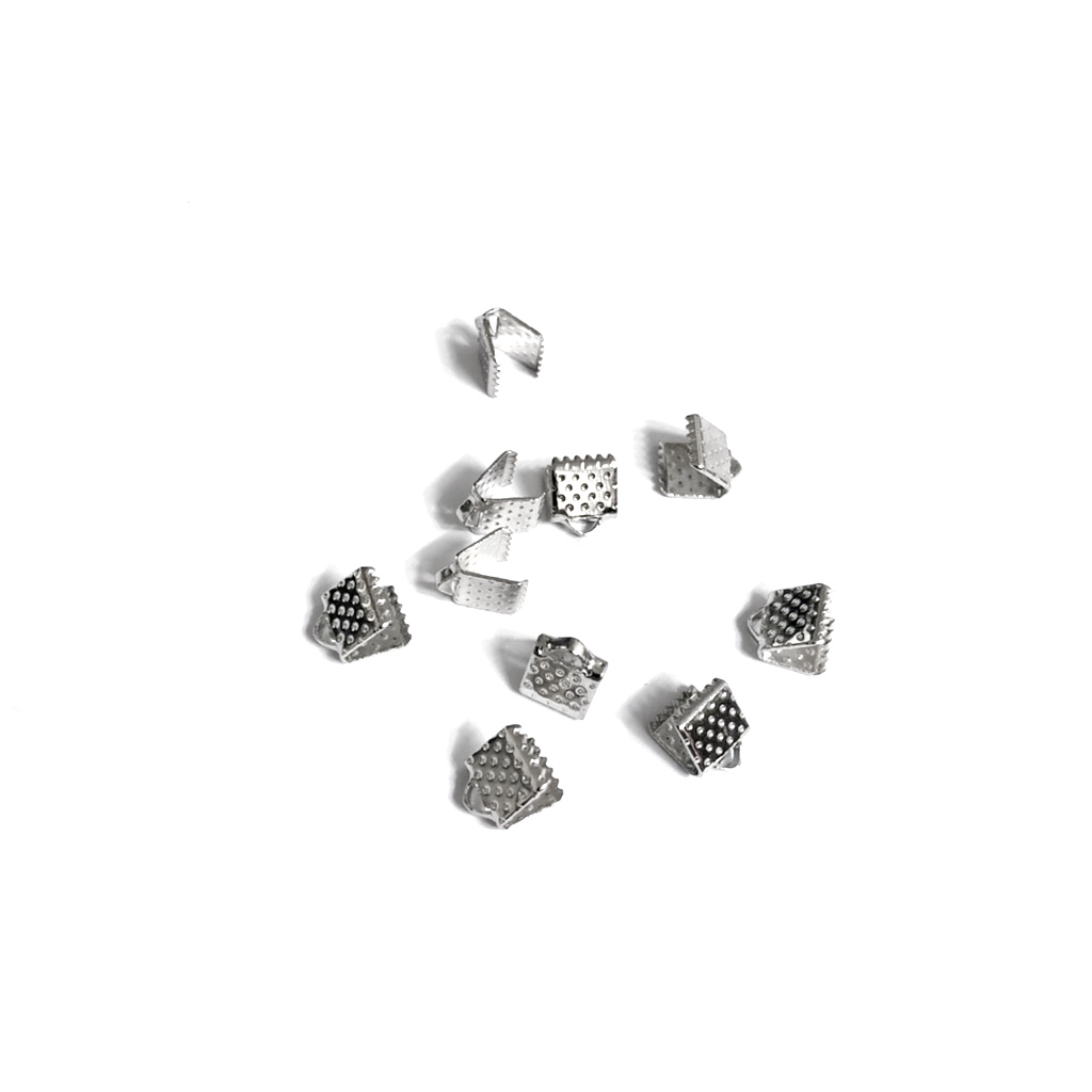$ 0.15 / 10 piecesSilvery metal ribbon clamps – width 6 mm – 10 pieces