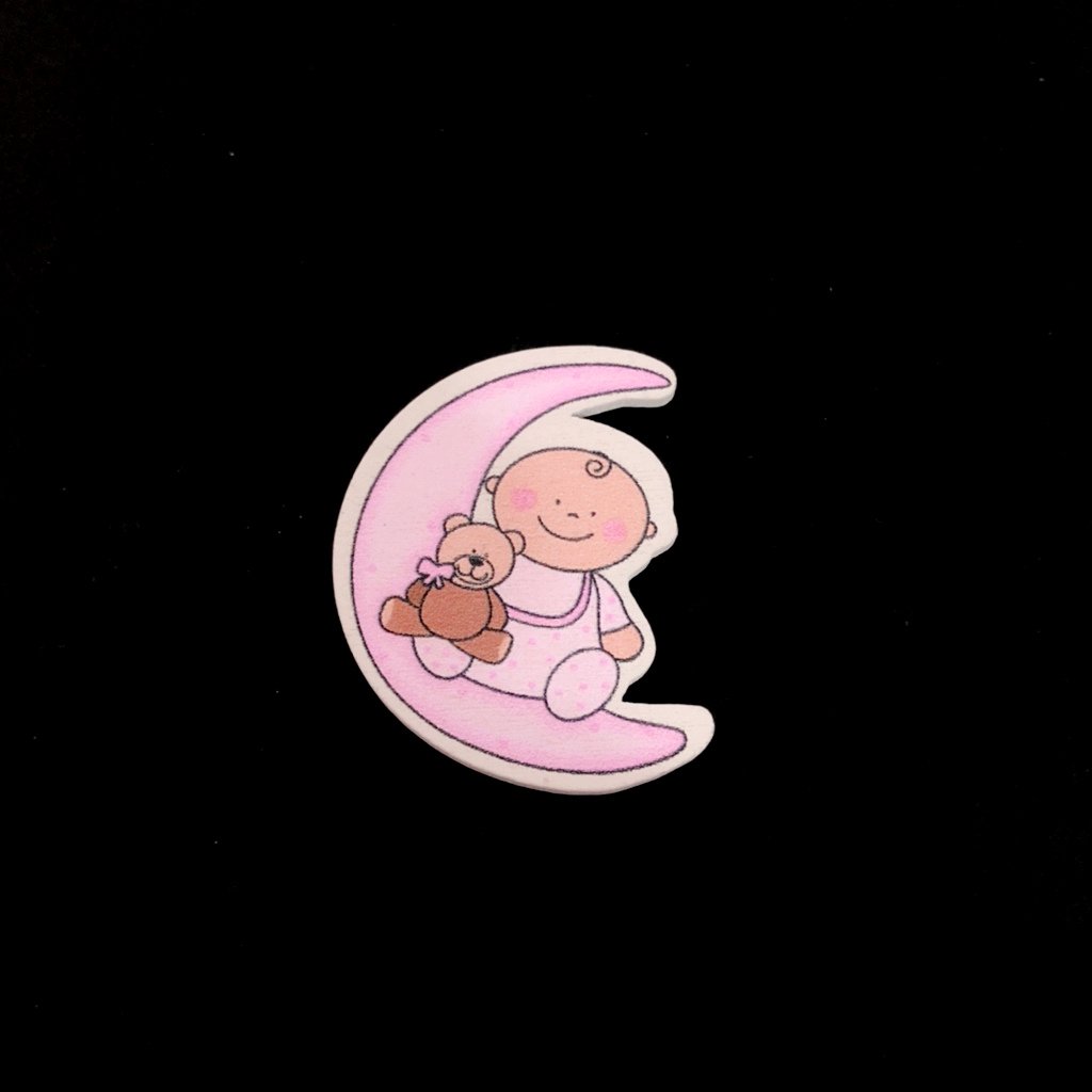 Pink brown cream white crescent baby and bear – size 35 x 38 mm – 2 pieces
