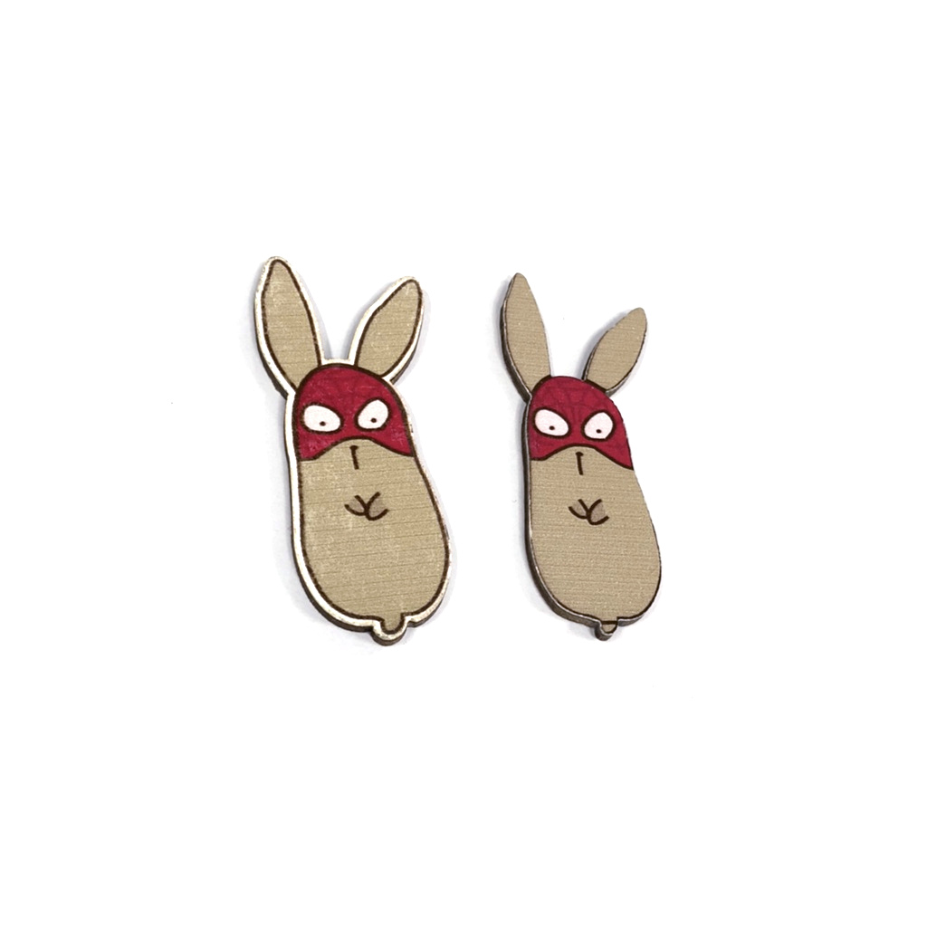 Red white yellow wooden spider-man rabbit – size 18 x 43 mm – 2 pieces
