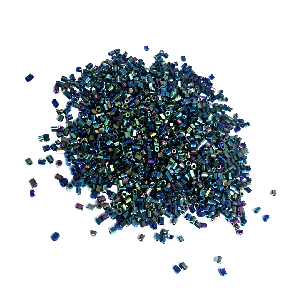 Iridescent greyish blue and bluish pink seed beads – size 2.5 mm – weight 50 g