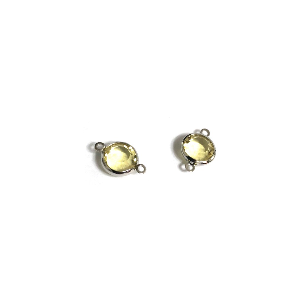 Faceted yellow rhinestones round silvery metal connectors – size 8 x 13 mm – 2 pieces