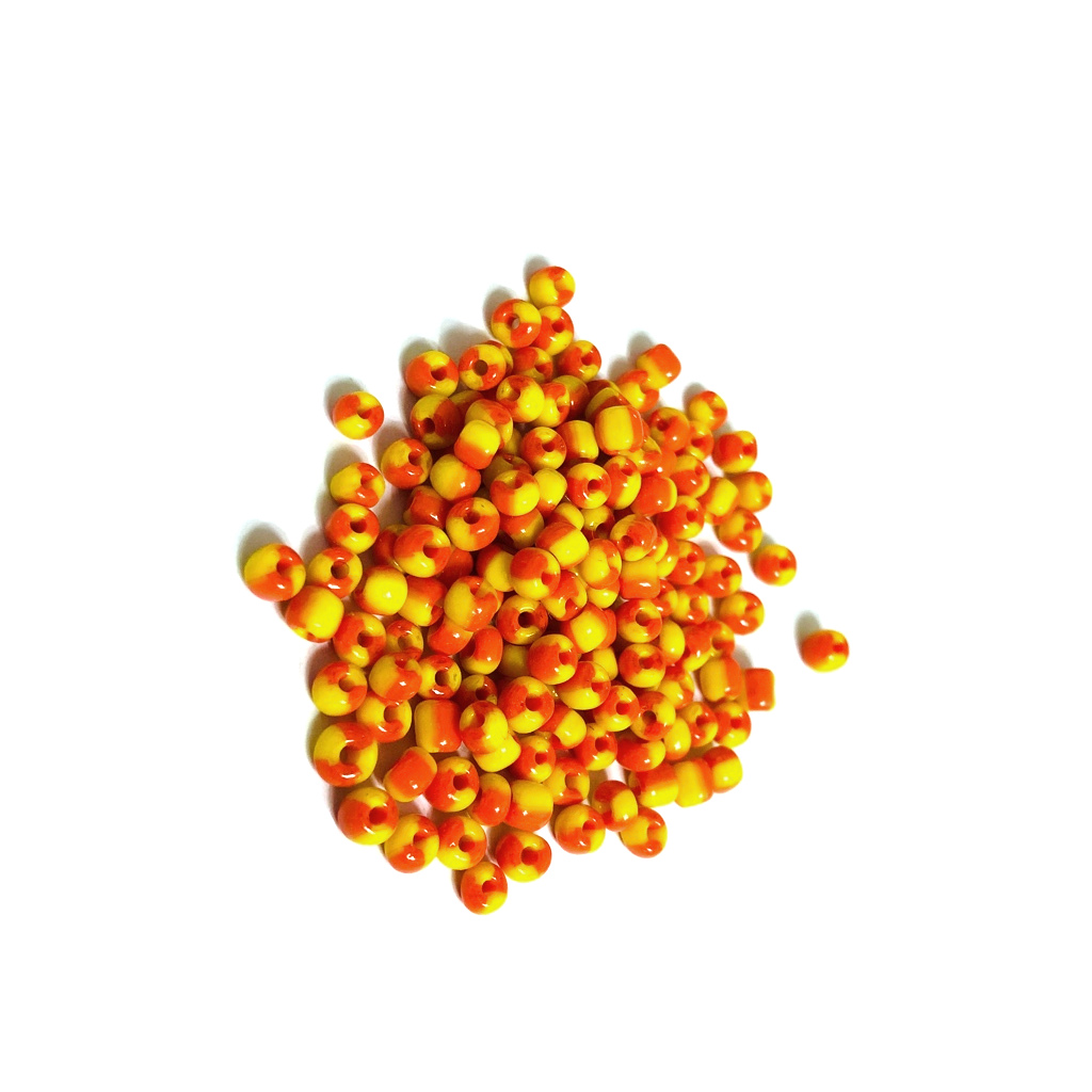 Orange and yellow round seed beads – size 4 mm – weight 44 g