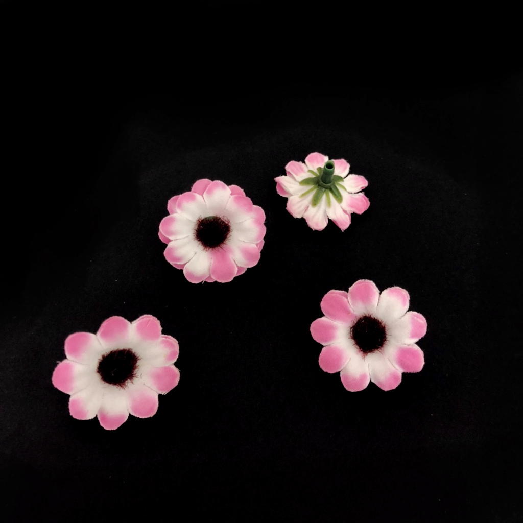 Pink and white fabric flower - diametre 30 mm - 4 pieces quantity